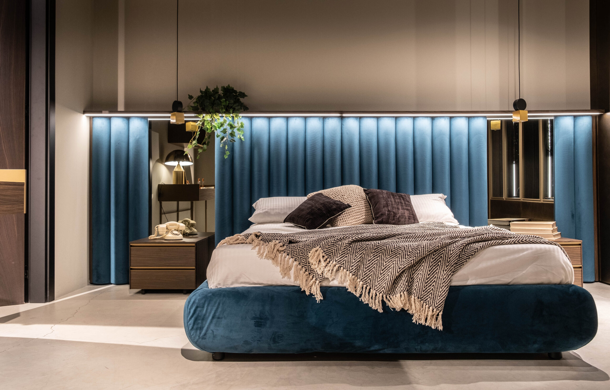 While we wait for our showroomโ€™s complete renovation, let’s once again immerse ourselves in the intimate and refined atmosphere of the GF Interiors bedroom, featuring the Arabesque bed in Viky 25 velvet.