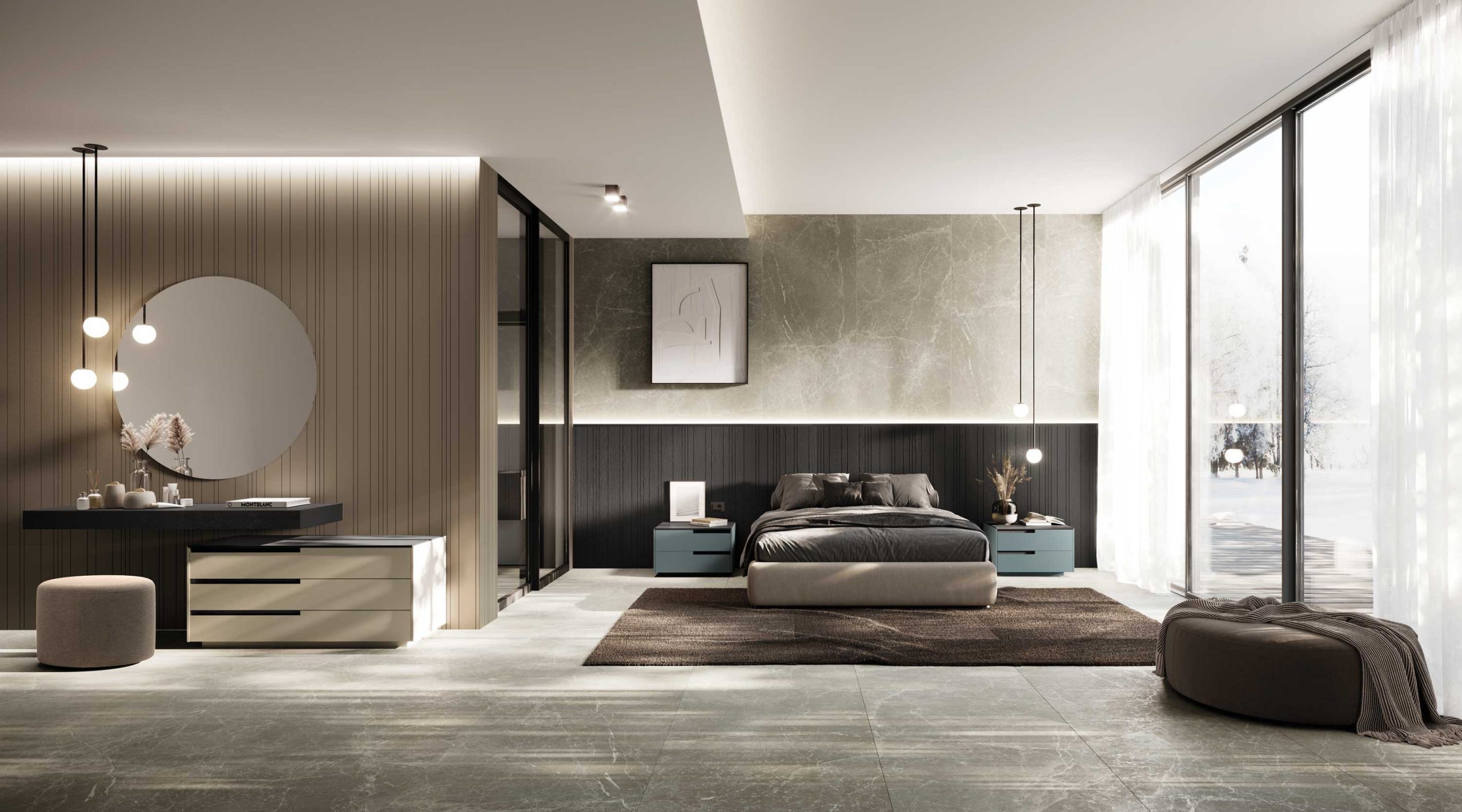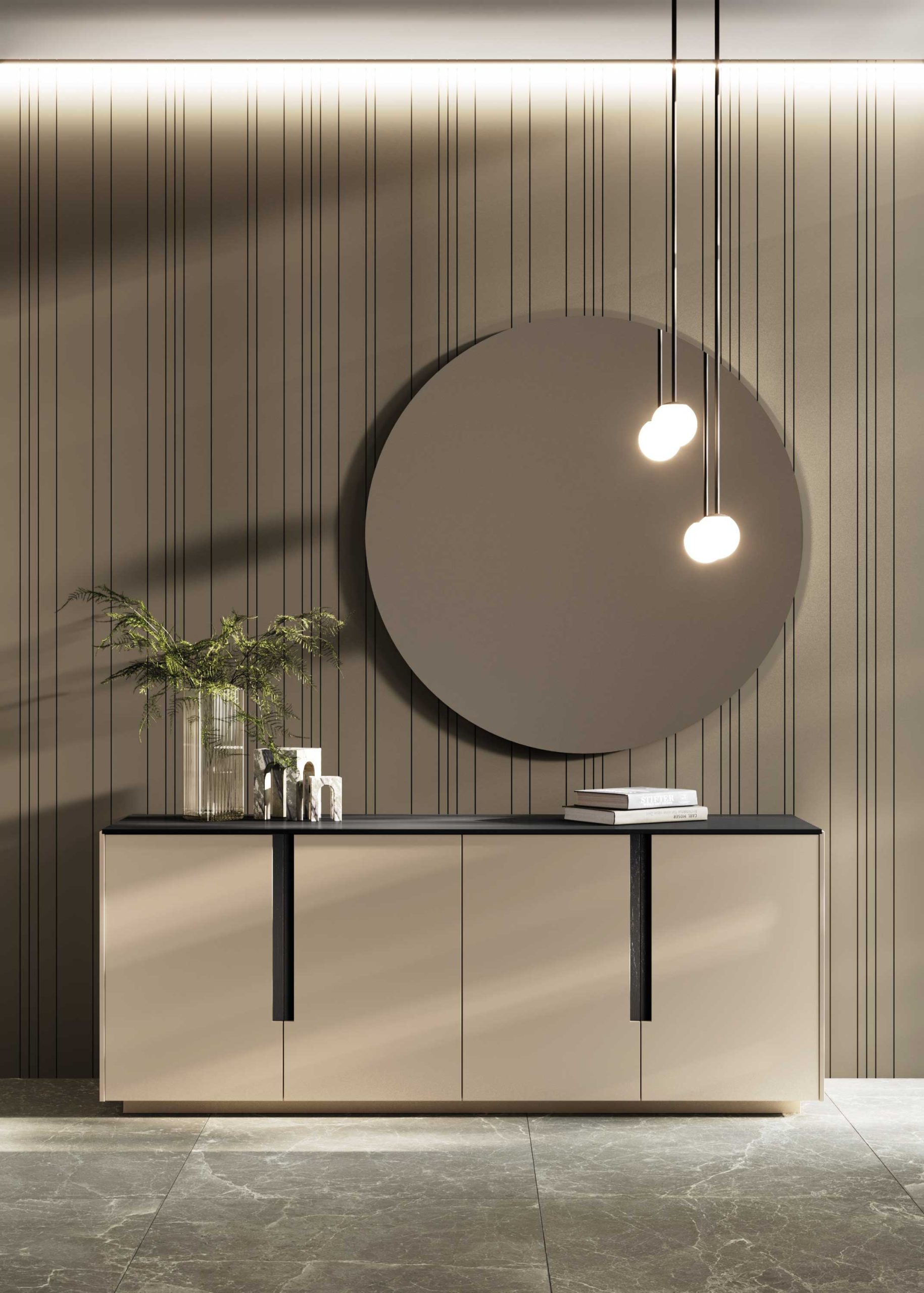 The vertical rhythm marked by the Tempo pattern amplifies the space and gives even more value to the fascinating horizontal signs left by the Stage complements.