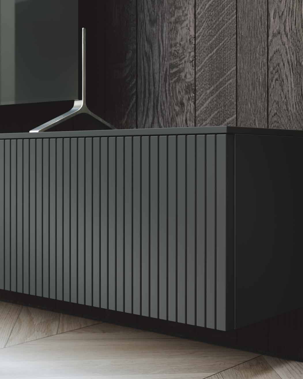 Base units in matt lacquer and wood create a perfect interplay.