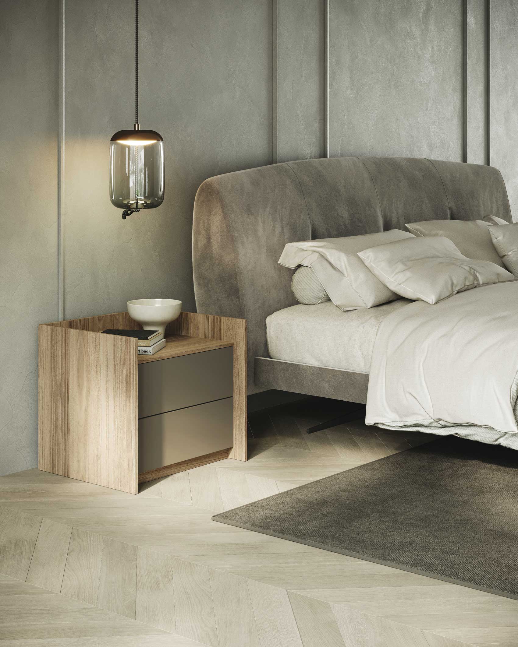 Madeleine is a piece written by Paolo Conte in which the artist uses the name of a woman to evoke distant memories, in the same way this model evokes atmospheres of the past thanks to its carved door with decorated clew. A classic project brought back to a contemporary setting where different styles blend in perfect harmony.