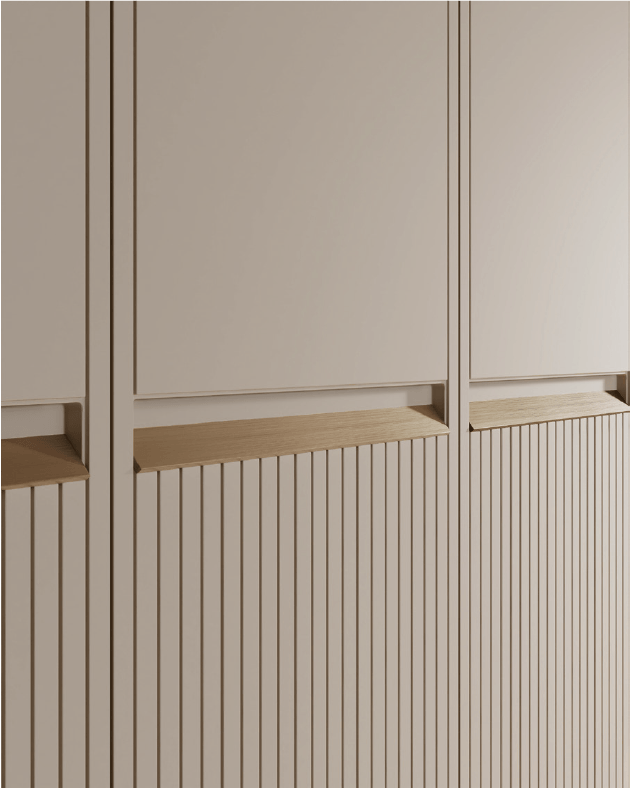 The name of this cabinet takes its inspiration from the woman who supported the famous jazz musician Thelonious Monk during most of his career; her name was Pannonica de Koenigswarter and she was nicknamed Nica.A thin frame surrounds each front, while the lower part features a striped decoration that is interrupted by the central groove cut into the thickness of the door.
